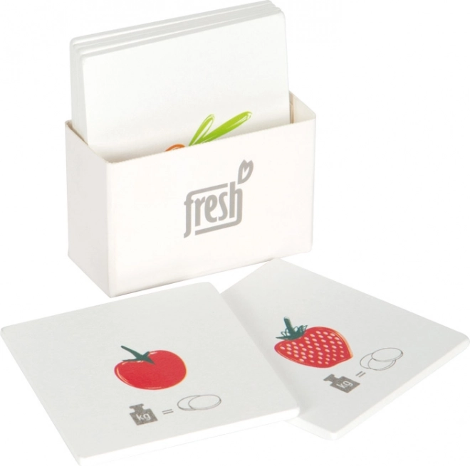 - 1× cântar pentru copii, 6× card cu fructe și legume