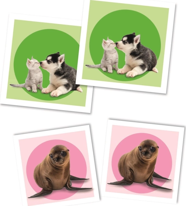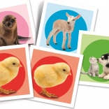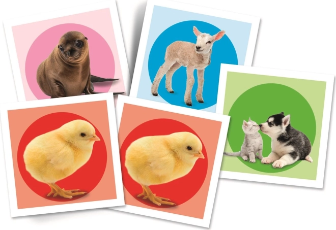 Ilustrațiile colorate ale puilor de animale atrag atenția și îi motivează pe copii să se joace în mod repetat, antrenând natural memoria și concentrarea.