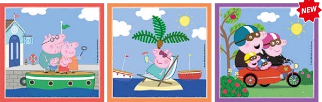 Faceți-le copiilor bucurie cu un set de trei puzzle-uri cu îndrăgitul motiv Purcelușa Peppa. Piesele sunt decupate cu precizie și se îmbină ușor, fiind potrivite și pentru micii începători. Materialele de calitate și tehnica de tipărire exclusivă garantează culori frumoase, clare și intense, care rezistă în timp.