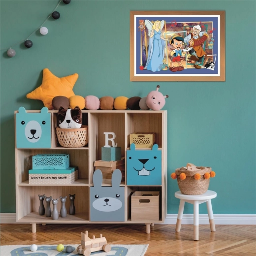 Puzzle-ul final are dimensiunea de 38 × 27 cm, încadrându-se comod pe masă sau pe o planșetă. Datorită celor 104 piese tăiate cu precizie, asamblarea este ușoară și plăcută. O idee excelentă de cadou pentru copiii de aproximativ 6 ani și pentru toți fanii lui Pinocchio.