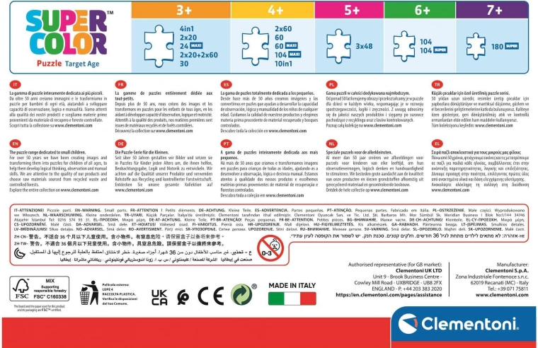 Descoperiți farmecul poveștii clasice cu puzzle-ul CLEMENTONI Disney Pinocchio din colecția SuperColor. În timp ce asamblează, copiii își exersează răbdarea, logica și motricitatea fină, fiind însoțiți de ilustrația colorată DISNEY. Tiparul de calitate și cartonul rezistent asigură durabilitate și asamblări repetate.