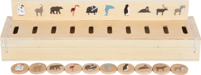 - Jetoane din lemn ilustrate și cutie robustă din lemn