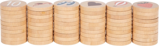 - 60 de jetoane din lemn rezistente cu ilustrații color