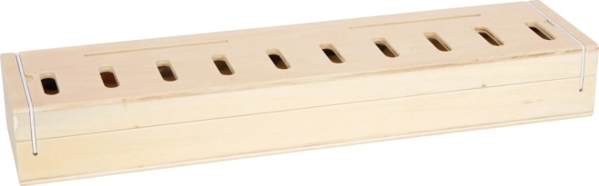 Distribuitorul din lemn cu zece compartimente păstrează totul ordonat. Închiderile cu elastic asigură o închidere sigură – ideal pentru călătorii.
