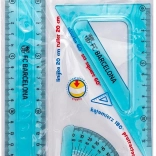 - Echipare completă pentru geometria școlară: riglă 20 cm, raportor 180°, echer 60°
