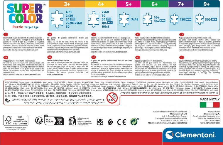 Două puzzle-uri pentru copii cu același număr de piese și aceleași dimensiuni. Colecția Puzzle SuperColor – ediție concepută special pentru copii, îi ajută să-și dezvolte îndemânarea manuală și capacitatea de observație. Calitatea materialelor și tehnica exclusivă de imprimare garantează culori mereu frumoase, vii și strălucitoare. Dimensiunea puzzle-ului asamblat aprox. 27 x 19 cm