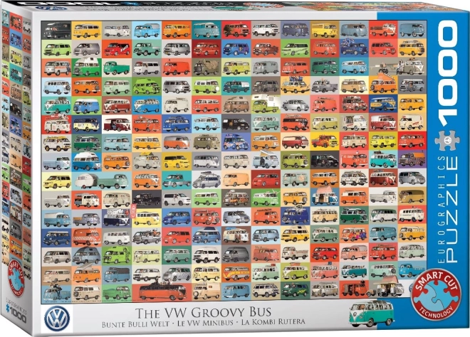 Cufundați-vă în lumea vehiculelor cult VW cu puzzle-ul EUROGRAPHICS „Groovy Bus”. Colajul de fotografii reunește atmosfera erei hippie și designul atemporal al mărcii Volkswagen. Datorită imprimării de calitate, culorile și detaliile fine ies în evidență, astfel încât imaginea finală va fi o decorațiune grozavă.