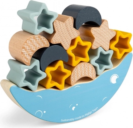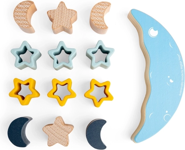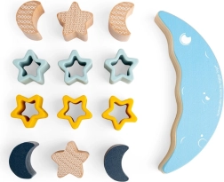 Jocul motric Luna în echilibru este conceput pentru a dezvolta motricitatea fină și imaginația copiilor. Piesele din lemn în formă de stele și semiluni nu numai că oferă un joc distractiv de așezare, dar îmbunătățesc și coordonarea mână-ochi. Datorită utilizării materialelor sustenabile, această jucărie este nu doar sigură, ci și ecologică.