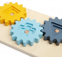 Această jucărie stimulează dezvoltarea cognitivă a copiilor încurajând rezolvarea problemelor, gândirea logică și recunoașterea formelor. Tablă motrică din lemn este potrivită pentru copiii de la 12 luni și oferă un mediu sigur și distractiv pentru jocul lor.