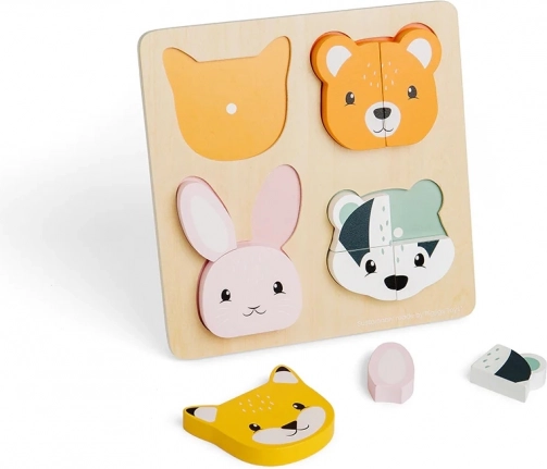 Acest minunat puzzle din lemn cu 10 piese este ideal pentru micii exploratori care doresc să învețe să distingă forme, culori și numere de bază. Copiii vor fi încântați de animalele drăguțe precum vulpea, ursul, iepurele și bursucul, care sunt împărțite în piese individuale și trebuie potrivite în deschizăturile corecte. Fiecare piesă are semne cu puncte, ceea ce ajută copiii care încă nu cunosc bine numerele.