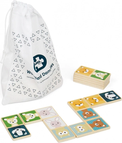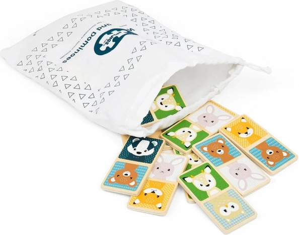 Pășiți cu copiii în lumea animalelor cu domino-ul din lemn cu animale de pădure. Fiecare dintre cele 28 de piese este decorată cu imagini colorate ale animalelor, toate piesele potrivindu-se perfect în mânuțele copiilor.