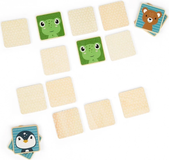 Pexeso-ul cu tematică de animale este o alegere excelentă pentru copiii de peste 2 ani. Fiecare jucător se rotește în a întoarce două piese, scopul fiind de a găsi cât mai multe perechi identice. Piesele din lemn sunt fabricate din lemn certificat FSC®, asigurând sustenabilitatea și siguranța pentru jocul copiilor.