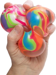 Eliberează tensiunea și îmbunătățește concentrarea cu mingea antistres NeeDoh Marbleez. Această minge colorată, de strâns și de întins se potrivește perfect în mână, este netoxică și potrivită pentru copii de la 3 ani. Ajută la reducerea stresului și anxietății, dezvoltă motricitatea fină și coordonarea mână–ochi. Disponibilă în 4 variante de culoare – dacă nu este menționată o preferință, expediem aleatoriu.