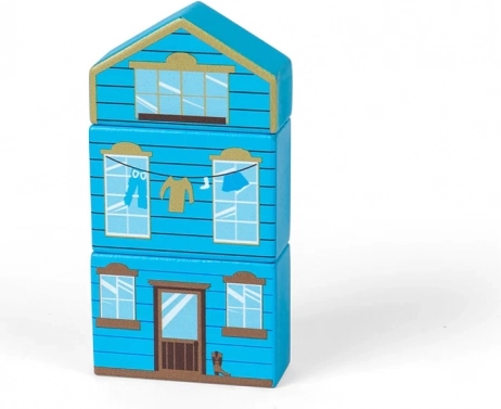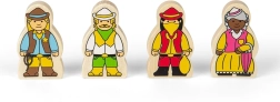 Figurinele colorate din lemn adaugă elemente de joacă de rol, susținând jocul imaginativ al copiilor.