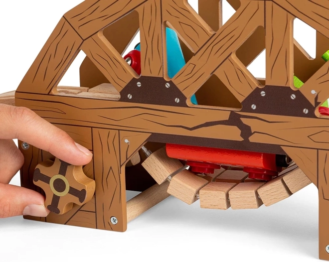 Acest pod este echipat cu o roată rotativă care permite bascularea podului şi adăugarea de dinamism în jocurile voastre cu trenuleţe.
