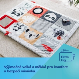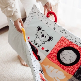 Salteaua educațională senzorială Canpol babies pentru stat pe burtică din colecția BabiesBoo este o modalitate sigură și plăcută de a menține copilul activ și îi permite părintelui să aibă un moment pentru sine sau să facă treburile casnice. Salteaua este excepțional de mare și moale – 130 x 95 cm oferă micuțului confort și siguranță. Salteaua educațională Canpol babies se pliază ușor, are un mâner comod pentru transport facil, astfel încât puteți crea un spațiu pentru copii oriunde aveți nevoie. O oglindă mare încurajează și prelungește timpul petrecut pe burtică, în timpul căruia bebelușul poate explora de fiecare dată diferite părți ale saltelei. Numeroase elemente senzoriale implică simțurile copilului: văzul, auzul și simțul tactil. Diferitele texturi ale materialelor, culorile și modelele contrastante, precum și sunetele delicate reprezintă o distracție grozavă pentru simțurile în dezvoltare ale bebelușului încă din primele clipe ale vieții. Salteaua educațională senzorială Canpol babies ajută la asigurarea dezvoltării corecte a motricității fiecărui copil. Salteaua poate fi spălată la mașină. Spațiu pentru copil oriunde avem nevoie. Recomandat de fizioterapeutul Magdalena Zujewicz – fizioterapeut pediatric, educator și terapeut de integrare senzorială. Salteaua excepțional de mare și moale oferă bebelușului confort și siguranță. O oglindă mare va trezi interesul bebelușului și va prelungi timpul petrecut pe burtică. Multe elemente care implică simțurile copilului: văzul, auzul și atingerea. Se pliază ușor datorită mânerului comod care facilitează transportul. Culorile și modelele contrastante susțin dezvoltarea vederii copilului. Susține dezvoltarea simțului tactil și exersează abilitățile manuale. Dezvoltă coordonarea mână-ochi și coordonarea audio-motorie. Ușor de întreținut curată – se poate spăla la mașină. Ideală pentru copii încă din primele momente ale vieții. Jucăria este realizată din material sigur, fără bisfenol A. Dimensiunile saltelei: 130 x 95 cm Instrucțiuni de utilizare: Modul de curățare este indicat pe etichetă. Spălați salteaua, cu excepția oglinzii, în mașina de spălat la o temperatură maximă de 30°C, pe ciclu delicat. Mențineți salteaua curată. Spălați salteaua, cu excepția oglinzii, la mașină la temp. max. 30°C folosind un program delicat. Utilizați detergent delicat pentru copii. Spălați separat. Ștergeți oglinda cu o cârpă umedă. Îndepărtați folia de protecție de pe oglindă. Avertizare! Important pentru sănătatea și siguranța copilului dumneavoastră! Verificați cu atenție înainte de fiecare utilizare. Înlocuiți jucăria uzată/deteriorată cu una nouă. Avertisment! Țineți departe de sursele de foc. Păstrați instrucțiunile pentru utilizări ulterioare. Salteaua corespunde cerințelor: Directiva Parlamentului European și a Consiliului 2009/48/CE privind siguranța jucăriilor EN 71 - 1 Siguranța jucăriilor - Partea 1: Proprietăți mecanice și fizice EN 71 - 2 Siguranța jucăriilor - Partea 2: Inflamabilitate EN 71 - 3 Siguranța jucăriilor - Partea 3: Migrarea anumitor elemente