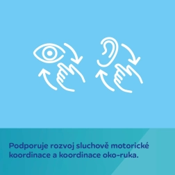 Prinderea sigură și stabilă pe pătuț asigură o instalare comodă. Jucăriile suspendate oferă diferiți stimuli (foșnet, piuit, zornăit), care dezvoltă stimularea vizuală și auditivă și coordonarea motorie încă de la 0m+.