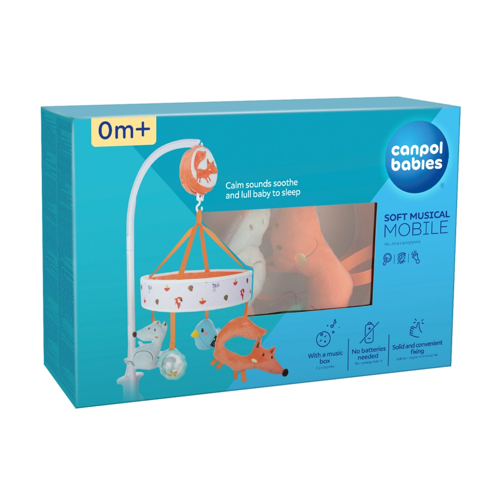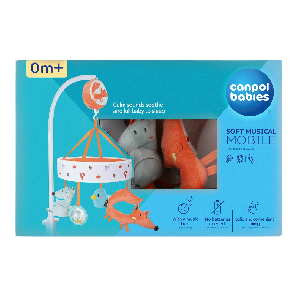 Liniștește-ți bebelușul și susține-i dezvoltarea încă din primele zile de viață cu caruselul de pluș CANPOL Babies din colecția FOX. Datorită mecanismului cu înfășare manuală nu necesită baterii și oferă melodii delicate, figurine de pluș și prindere sigură de pătuț. Caruselul stimulează văzul, auzul și coordonarea mână–ochi și ușurează adormirea.