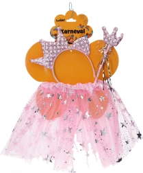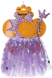 Acest set delicat în tonuri de mov va aduce un zâmbet pe chipul oricărui copil. Datorită fustei ușoare și bentiței comode cu ornament, micuța prințesă se va simți ca într-o poveste, iar bagheta va completa costumul cu acea notă de magie.