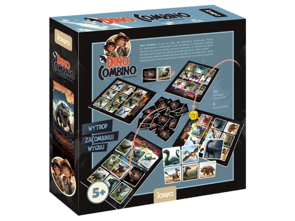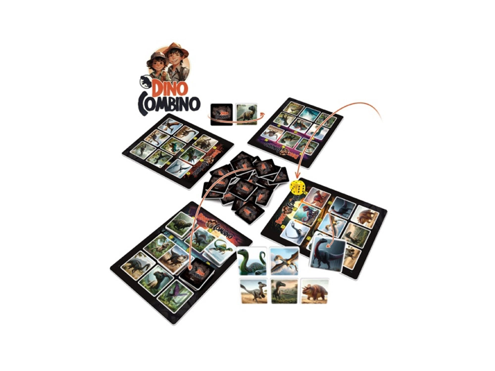 Jocul DINO Combino este o alegere excelentă pentru toți iubitorii de dinozauri. Scopul este să îți completezi primul tabla de joc cu dinozaurii potriviți. Jucătorii aruncă pe rând cu zarul, întorc cartonase și le asociază inteligent. Reușita depinde de memorie bună, atenție și combinații istețe.