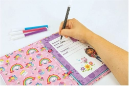 Cu acest set bogat pentru realizarea jurnalului, copiii creează cu ușurință propriul caiet original plin de culori, autocolante și personajele îndrăgite din serialul Căsuța Magică a lui Gabi. Ai nevoie doar de lipici și foarfecă, iar imaginația nu mai are limite. În jurnal vei găsi și un buzunar secret pentru amintiri – bilete, tichete sau mici mesaje.