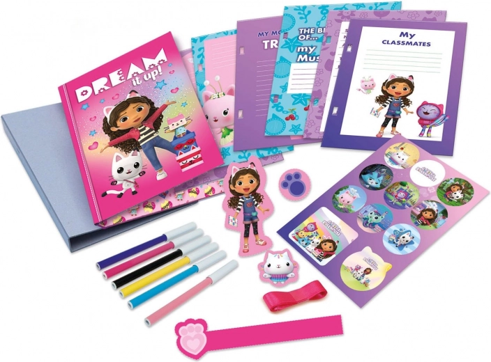 - Coperți din carton, pagini de jurnal personalizate, 27 de pagini pretipărite (unele cu inscripții în engleză), autocolante cu Gabi, poster cu copertă decorativă, imagini și ornamente de decupat, markere, panglică satinată, instrucțiuni ilustrate