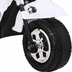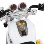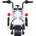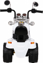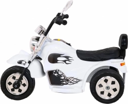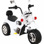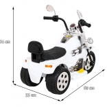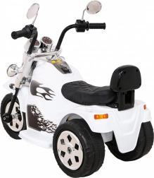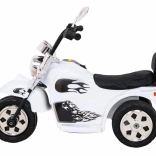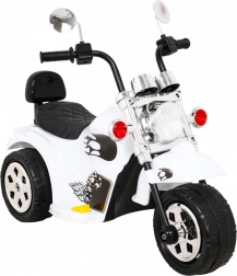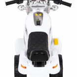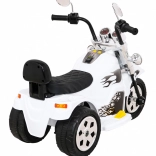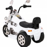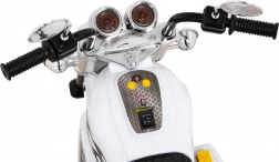 Motocicleta stilată pentru copii Hot Chopper, în culoarea albă, oferă copiilor o plimbare sigură datorită celor trei roți, controlului ușor și motorului de 25 W. Include faruri frontale, melodii pentru distracție și o construcție stabilă cu sarcină maximă de până la 25 kg.