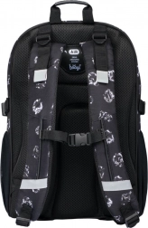 Rucsacul este confecționat din material textil rezistent și impermeabil, are bretele de umăr, piept și curele de compresie laterale reglabile și are grijă de siguranță datorită elementelor reflectorizante. Buzunarele laterale din plasă sunt ideale pentru sticlă, penarul oferă organizarea clară a accesoriilor, iar săculețul poate fi purtat confortabil pe spate datorită șnururilor solide.