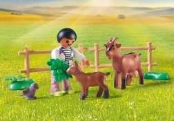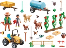 Setul include: două figurine Playmobil, un câine, două capre, un tractor cu remorcă, cisterna de apă și multe alte accesorii care adaugă realism poveștilor.