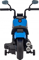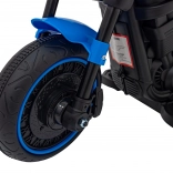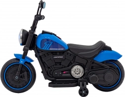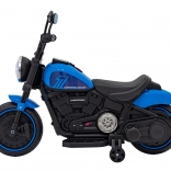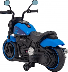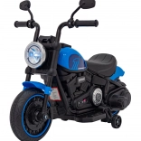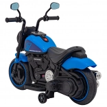 Motocicleta electrică stilată pentru copii Chopper Faster, în culoare albastră, oferă o plimbare sigură datorită rotițelor de stabilizare, controlului intuitiv înainte/înapoi și dotărilor bogate. Copiii se vor bucura de distracție cu radio FM, Bluetooth, MP3/USB/SD și lumini LED. Construcția ușoară și alimentarea pe baterie 6V asigură confort atât în casă, cât și afară.