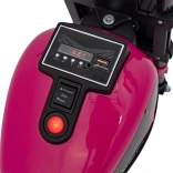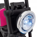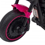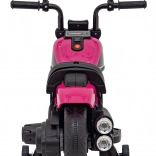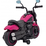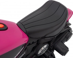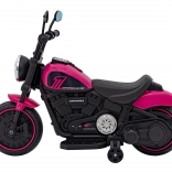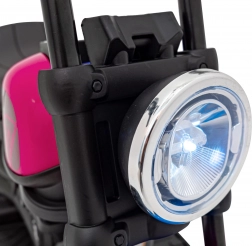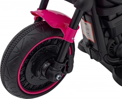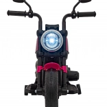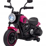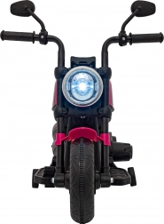 Motocicletă electrică pentru copii, stil chopper, oferă distracție sigură pentru micii piloți. Dispune de motor puternic de 20 W, baterie 6 V/4,5 Ah, far LED frontal și roți de stabilizare. Datorită panoului audio cu radio FM, MP3, Bluetooth, USB, SD și AUX, copiii se bucură de melodiile preferate la fiecare plimbare.