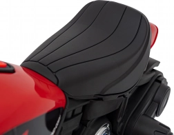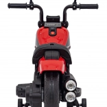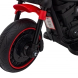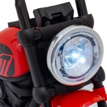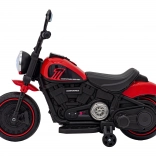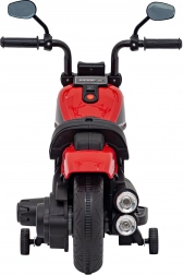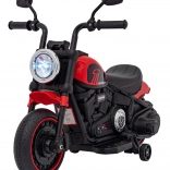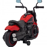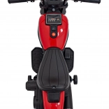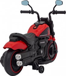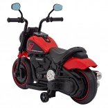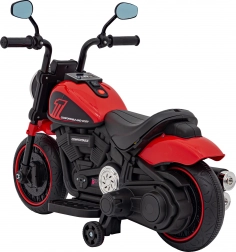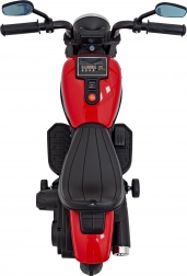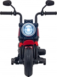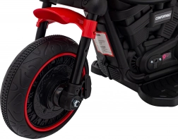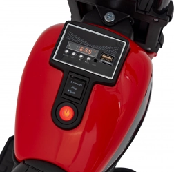 Motocicleta stilată pentru copii chopper FASTER oferă micilor piloți multă distracție și siguranță. Dispune de propulsie electrică de 20 W, acumulator 6V/4,5Ah, faruri LED și un bogat panou audio (radio FM, MP3, SD, Bluetooth, USB, AUX). Roțile din plastic stabile și rotițele ajutătoare asigură o deplasare ușoară înainte și înapoi, iar șaua moale și sunetele realiste de pornire a motorului completează experiența autentică.