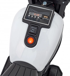Muzica și poveștile preferate sunt mereu la îndemână datorită panoului audio cu radio FM și posibilității de redare prin MP3, Bluetooth, USB, SD sau AUX. Șaua confortabilă și construcția ușoară asigură manevrare facilă și transport ușor.