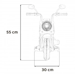 Oferiți copiilor o plimbare distractivă și sigură pe o motocicletă electrică în stil chopper. Detaliile realiste, farul LED frontal și posibilitatea de a merge înainte și înapoi susțin dezvoltarea motricității și a încrederii micilor piloți. Datorită roților de stabilizare, motocicleta este potrivită și pentru începători.