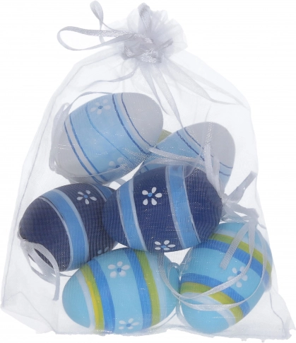 Ouă de plastic decorative care vor înfrumuseța casa dumneavoastră. Fiecare ou măsoară 6 cm și pachetul conține 6 bucăți într-un săculeț elegant de organza.