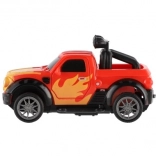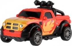 Datorită mecanismului cu inerție din roțile din spate, mersul este lin și distractiv. Aspectul sportiv, cu flăcări și detalii pronunțate, subliniază caracterul aventuros al jucăriei. Varianta de culoare (roșu sau albastru) este livrată în funcție de stocul disponibil.