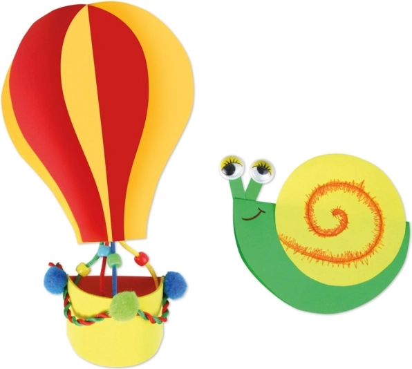 - Materiale diverse precum hârtii, spumă EVA, bețișoare pufoase, nasturi, ochi mobili și multe altele.