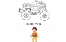 Setul de construcție cu 267 piese transformă camera copilului într-o arenă off-road: propulsie pull-back fără baterii, roți mari pentru teren accidentat, design îndrăzneț cu flăcări și figurină articulată. Fabricat din ABS sigur, compatibil cu LEGO, ideal de la 6 ani.