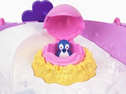 Partea de jos a setului este un adevărat parc de distracții: copiii vor iubi toboganul spre zona cu apă, leagănul și ouțul misterios din care „iese” un pinguin drăgălaș. Micul cangur ascunde în plus un al doilea mini spațiu pentru și mai multă joacă. În pachet se găsesc mini păpuși, animăluțe și multe accesorii pentru îngrijire și hrănire.