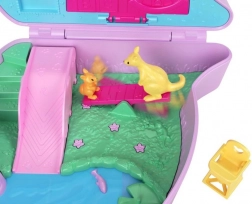 Descoperă mini-lumea fermecată ascunsă într-o gentuță în formă de cangur. După deschidere, copiii găsesc diferite niveluri cu cămăruțe – dormitor pentru pui, colț de luat masa cu scăunel de hrănire și baie cu cadă. Nu lipsește platforma din copac pentru koala, zona acvatică cu iaz și elementele interactive pentru povești fără sfârșit.
