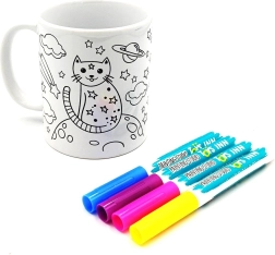 Cana ceramică pentru colorat cu motiv de pisică este ideală pentru creativitatea copiilor. Permite copiilor să decoreze original propria cană folosind markerele incluse: