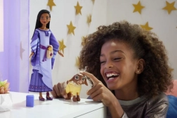 Descoperă lumea dorințelor cu păpușa Asha, atent realizată, în rochie lungă mov și cu păr fin împletit. Setul este inspirat de filmul animat Disney Wish și le oferă copiilor numeroase posibilități pentru joacă imaginativă – de la povestire până la stilizare și completarea ținutelor.