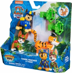 Creează-ți propriile aventuri cu Chase, Tracker și prietenul lor tigru. Chase, Tracker și tigrul au peste 5 cm înălțime și arată exact ca în serialul TV. Când vine momentul pentru o misiune de salvare palpitantă, atașează proiectilul tip plasă de coada tigrului, trage coada cât de mult poți, apoi apasă butonul pentru a lansa și a salva situația. Folosește-ți imaginația pentru a reinterpreta episoadele preferate din Patrula Cățelușilor: Patrula din junglă sau creează misiuni complet noi. Pentru și mai multă distracție și misiuni pline de acțiune inspirate din Patrula Cățelușilor, adună toate jucăriile din filmul Patrula Cățelușilor: Patrula din junglă și Patrula Cățelușilor: Marele Film, precum uimitoarea aeronavă de comandă, dar și toate jucăriile speciale Patrula Cățelușilor pentru fete și băieți, cum ar fi figurinele și seturile Cățeluși Mari, Patrula Acvatică și Camionul Mare (fiecare se vinde separat). Cu jucăriile Patrula Cățelușilor pentru preșcolari, copiii își pot explora imaginația prin joacă, își pot dezvolta abilitățile motorii și pot retrăi scenele preferate din serial. Bucură-te de aventuri nesfârșite cu setul de figurine Chase, Tracker și Tigrul din Patrula din junglă.