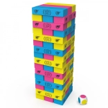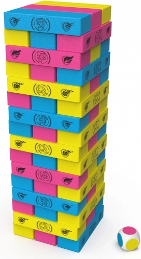 Aruncați zarul și stabiliți ce culoare de bloc veți scoate din turn. Pe rând, fiecare jucător îndepărtează 1 bloc de culoarea indicată, până când unul dintre jucători face ca turnul să se răstoarne.