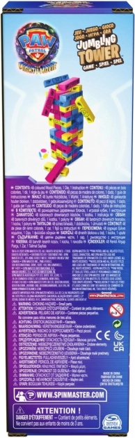 Sunteți pregătiți pentru jocul Patrula Cățelușilor: The Great Movie? Dacă da, pregătiți-vă pentru jocul de acțiune Tower, care aduce distracția din continuarea aventurilor cinematografice chiar la voi acasă. Acest joc include 48 de piese din lemn roz, galbene și albastre, cu imagini ale personajelor din al doilea film Patrula Cățelușilor, în care ele devin Super Cățeluși. Nu lăsați turnul să se răstoarne în acest joc simplu pentru familie, prieteni și colegi de clasă. Aruncați zarul și stabiliți ce culoare de bloc trebuie să scoateți din turn. Pe rând, fiecare jucător scoate un bloc de culoarea indicată, până când unul dintre jucători face ca turnul să se prăbușească. Câștigă cel care a jucat înaintea celui care a răsturnat turnul. Jocul este potrivit pentru 2–4 jucători cu vârsta 4+ și este un plus ideal la colecția de jocuri de societate pentru copii de 4–6 ani și la jucăriile Patrula Cățelușilor pentru fete și băieți. Include toți cățelușii preferați din Patrula Cățelușilor, inclusiv Skye, Marshall, Chase și Rubble. Dacă micuții voștri iubesc pe Chase și Turnul din Patrula Cățelușilor, vor iubi și acest nou joc Tower. Este un cadou grozav pentru toți fanii Patrula Cățelușilor. Urmăriți noul film la cinema sau acasă și pregătiți-vă pentru o seară de jocuri cu Spin Master Games.