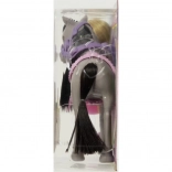 Poneiul gri cu zăbală mov, coamă și coadă moi este ideal pentru pieptănat, mângâiat și îngrijire.