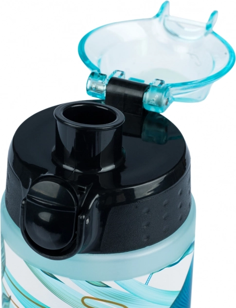 Închidere tip flip cu buton, blocabilă, împiedică scurgerile în geantă și permite băutul comod cu o singură mână.