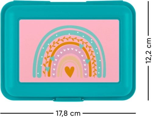 Transformați pauza într-un moment stilat cu cutia noastră pentru prânz Curcubeu, culoare turcoaz. Această cutie de plastic funcțională este ideală pentru utilizarea zilnică, datorită închiderii cu un singur lacăt și separatorului practic interior. Cutia este concepută pentru a fi rezistentă și ușor de transportat, fiind alegerea perfectă pentru școală și muncă.
