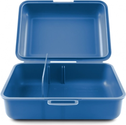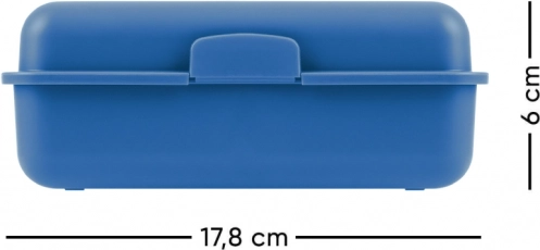 Cutia albastră din plastic are dimensiunile de 17,8 cm x 12,2 cm, ceea ce o face ideală pentru transportul și stocarea comodă a alimentelor.