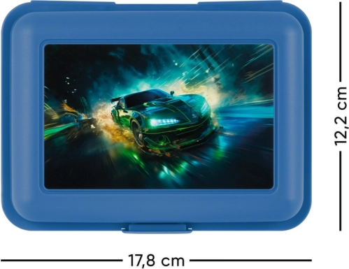 Această cutie de prânz practică oferă un interior spațios și este fabricată din plastic durabil. Închiderea facilă cu o singură încuietoare asigură păstrarea în siguranță a alimentelor. Designul elegant cu tema mașinilor de curse va încânta atât copiii, cât și adulții.